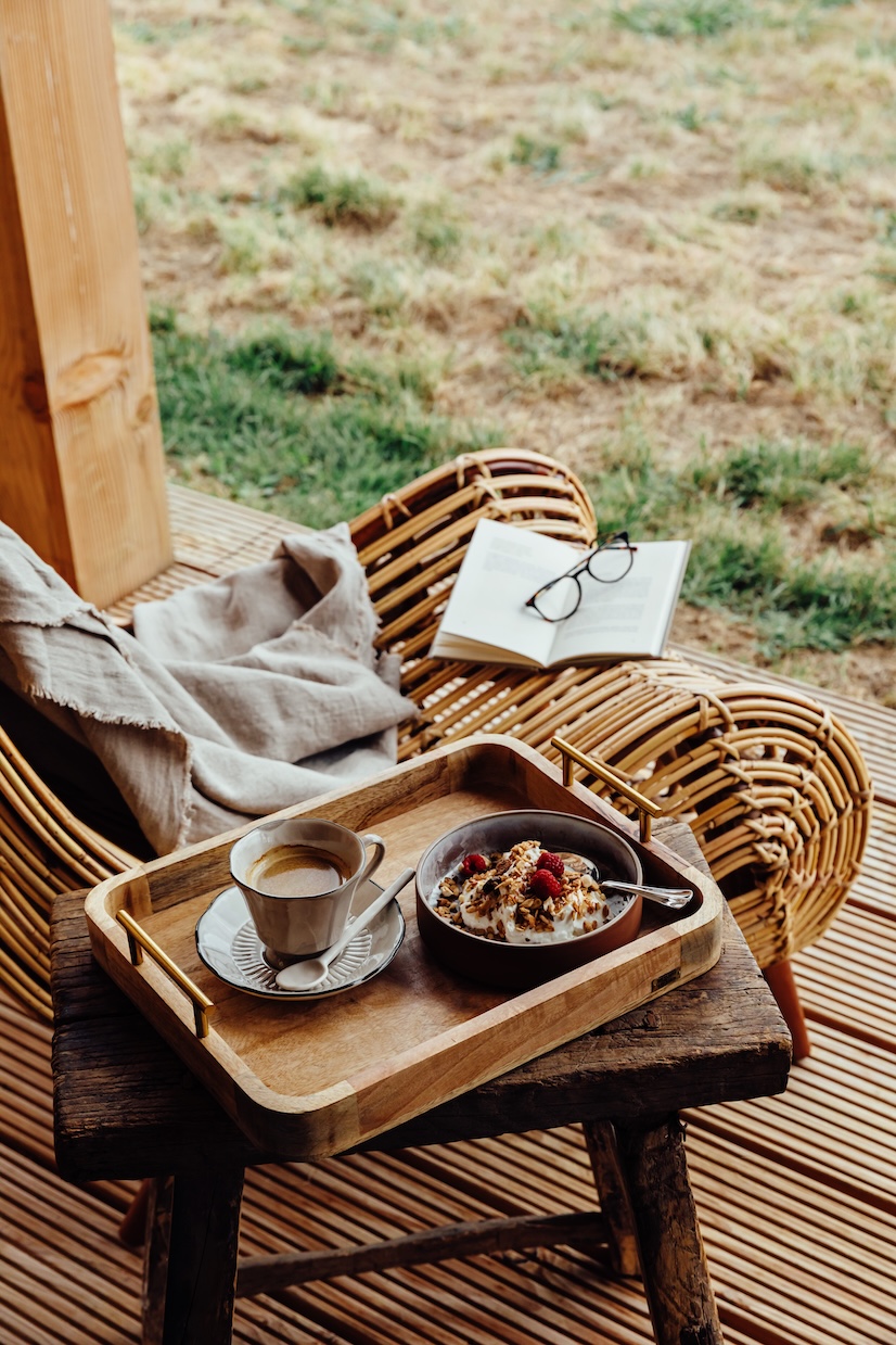 Vroeg in de ochtend is er stilte en beweging. Yoga, een wandeling door de heuvels, of gewoon